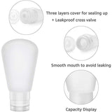 - These silicone travel bottles are perfect for shampoo, lotion, conditioner, face wash, body wash, sunblock, come with a zippered clear toiletry bag, portable, compact, easy solution to security check-ins